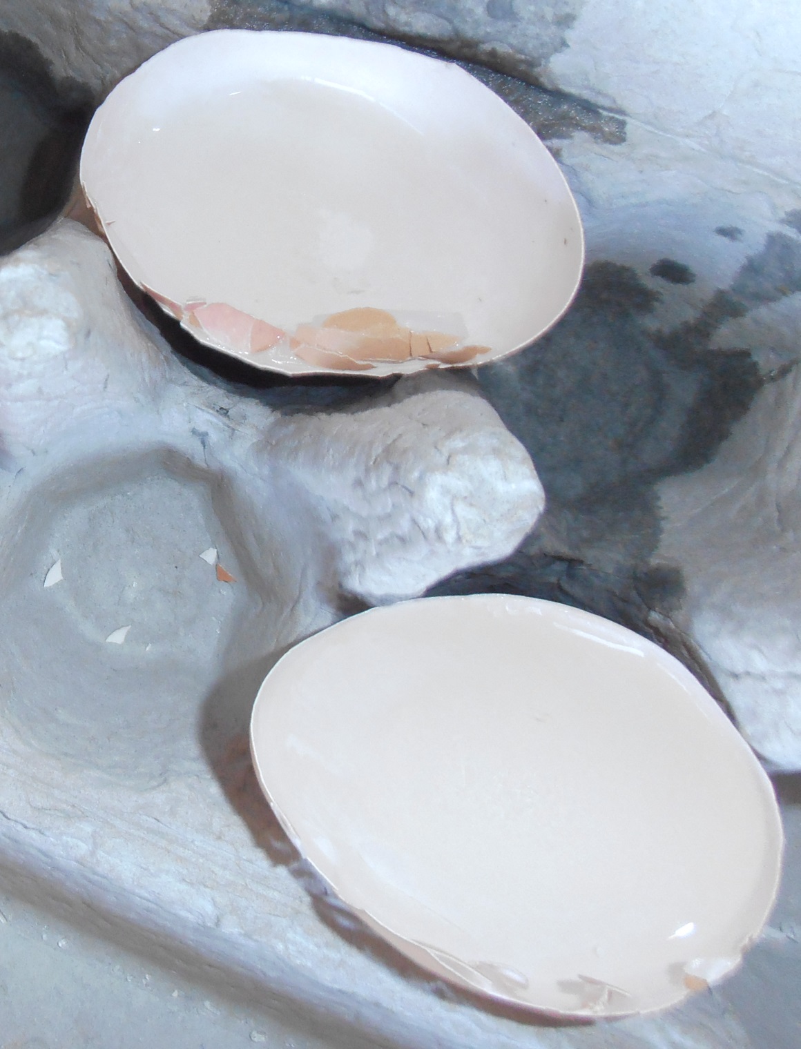 Step One –  Paint the inside of your egg shells with the PVA glue to help seal any cracks and sprinkle a little Epsom salts in each. Then let dry.