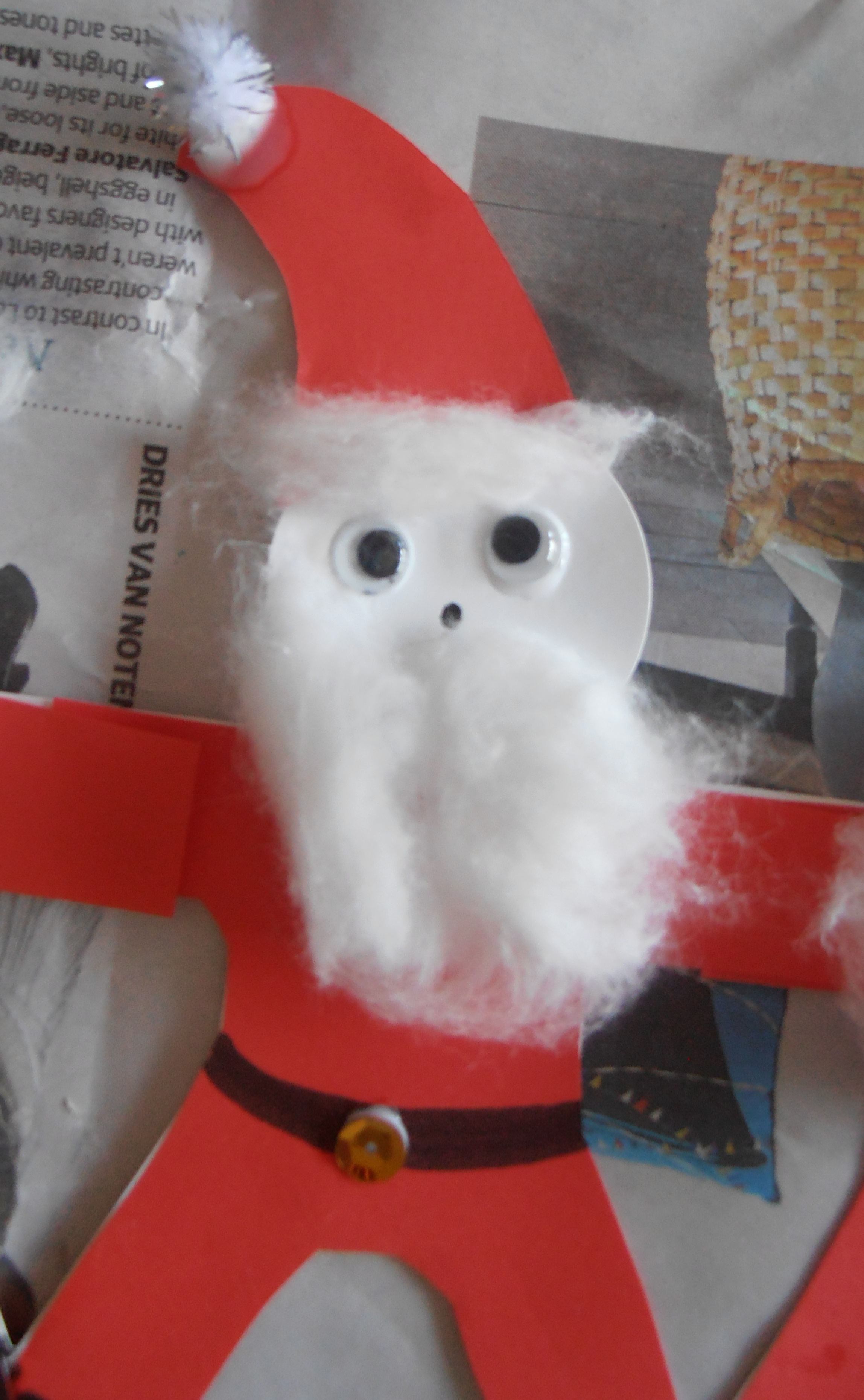 Step 8 – Add some googly eyes (with PVA glue) to each Santa’s face.