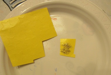 Step 4 – Using your fingers, carefully sprinkle or gently place some of your sparkliest sparkles all over one side of your glitter glue covered foam ball and let them sink in and stick.