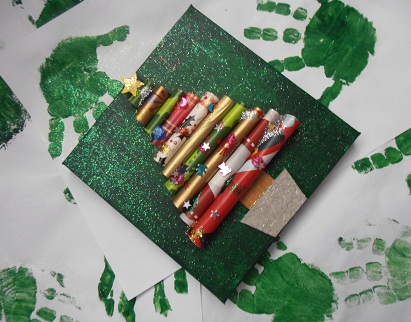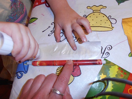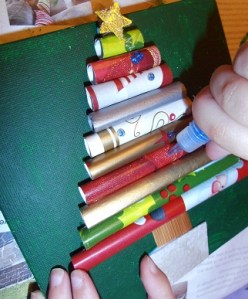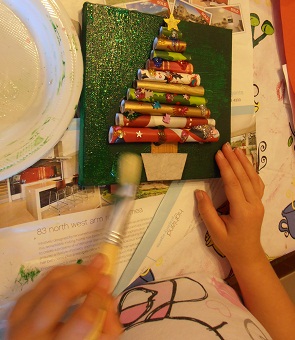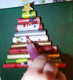 Step 6 – When the bauble is completely dry, press a piece of tinsel pipecleaner into the top at two points, making a hanging loop.