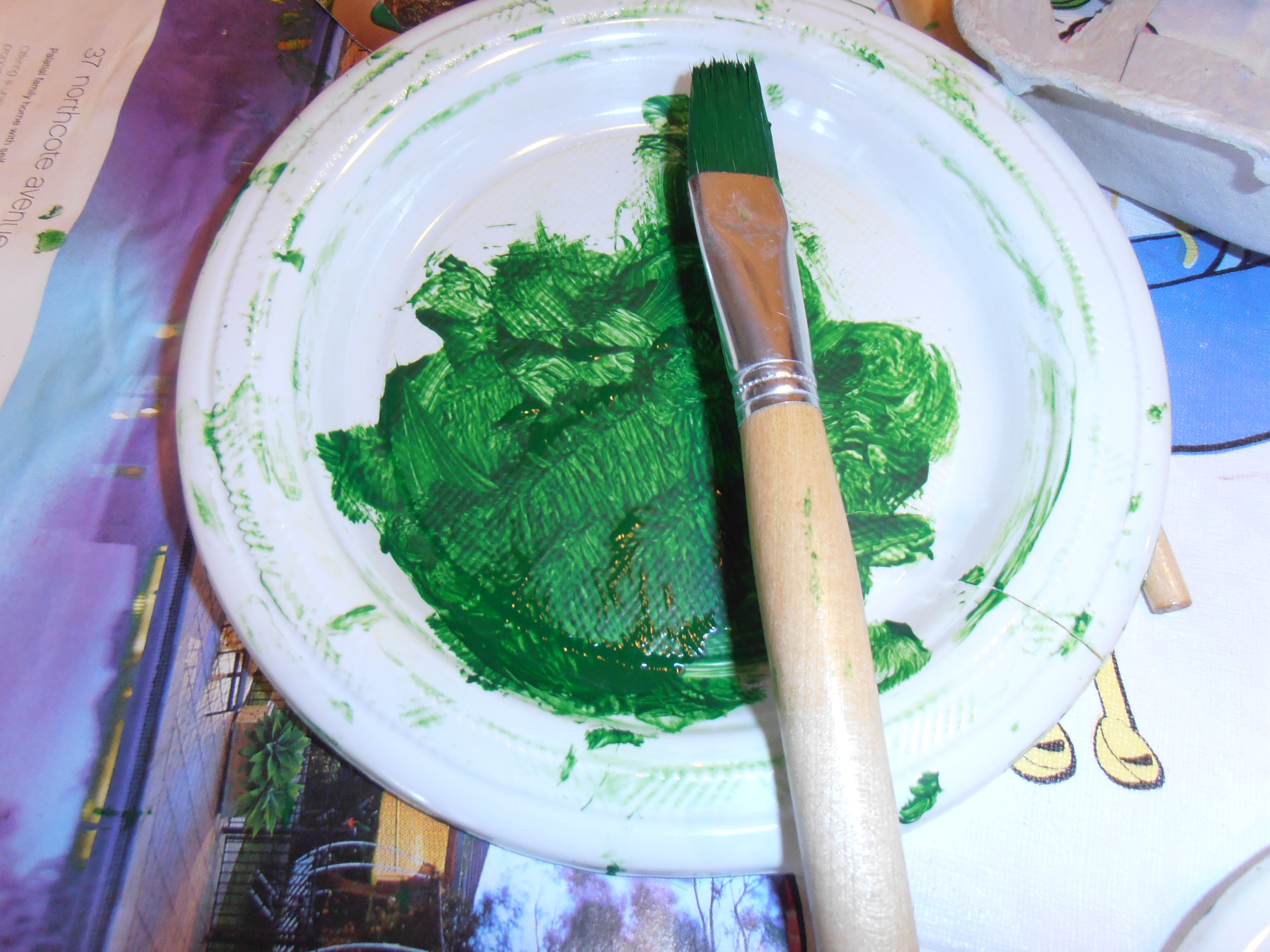 Step 2 – Hold onto the plastic cup and use it as a stand for your foam ball as you paint one side of the foam ball in your favourite Christmas colour paint. Then turn the ball over and paint the other side. Leave it to dry for a few hours or overnight and then repaint one side – letting it dry – and then turn it over to paint the other side again. Leave it for a few hours or overnight once again to make sure it is completely dry.